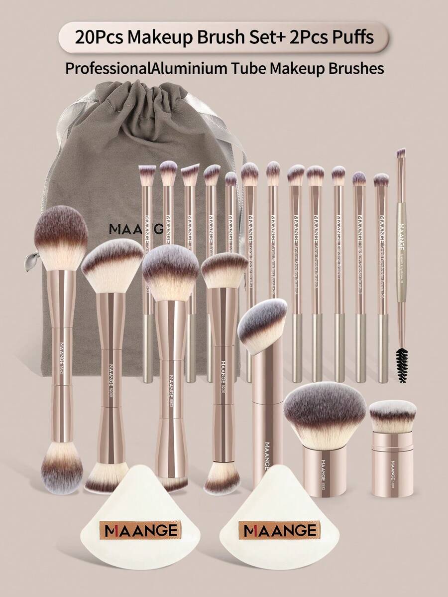 MAANGE 13/20/23 pièces d'outils de maquillage comprenant 20 pièces de set de pinceaux de maquillage en tube d'aluminium professionnel + 1 sac de rangement + 2 pièces de houppettes à coussin d'air pour un usage quotidien et les voyages, accessoires de maquillage cadeaux pour les amis, set de pinceaux, kit de pinceaux de maquillage, set de pinceaux de maquillage, kit de maquillage complet, set de pinceaux de maquillage, kit de maquillage complet, kit de pinceaux, set de pinceaux de maquillage, coffret cadeau de maquillage