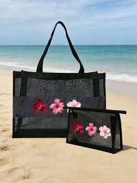1 pièce Grand sac de plage imperméable, sac de plage pliable léger, sac de voyage portable, sac de plage en maille, sac fourre-tout multifonctionnel pour les courses, sac de rangement pour jouets de plage d'été, grand sac de rangement pour le bain et la natation, sac de toilette et sac fourre-tout, essentiel pour la plage, les voyages, les croisières
