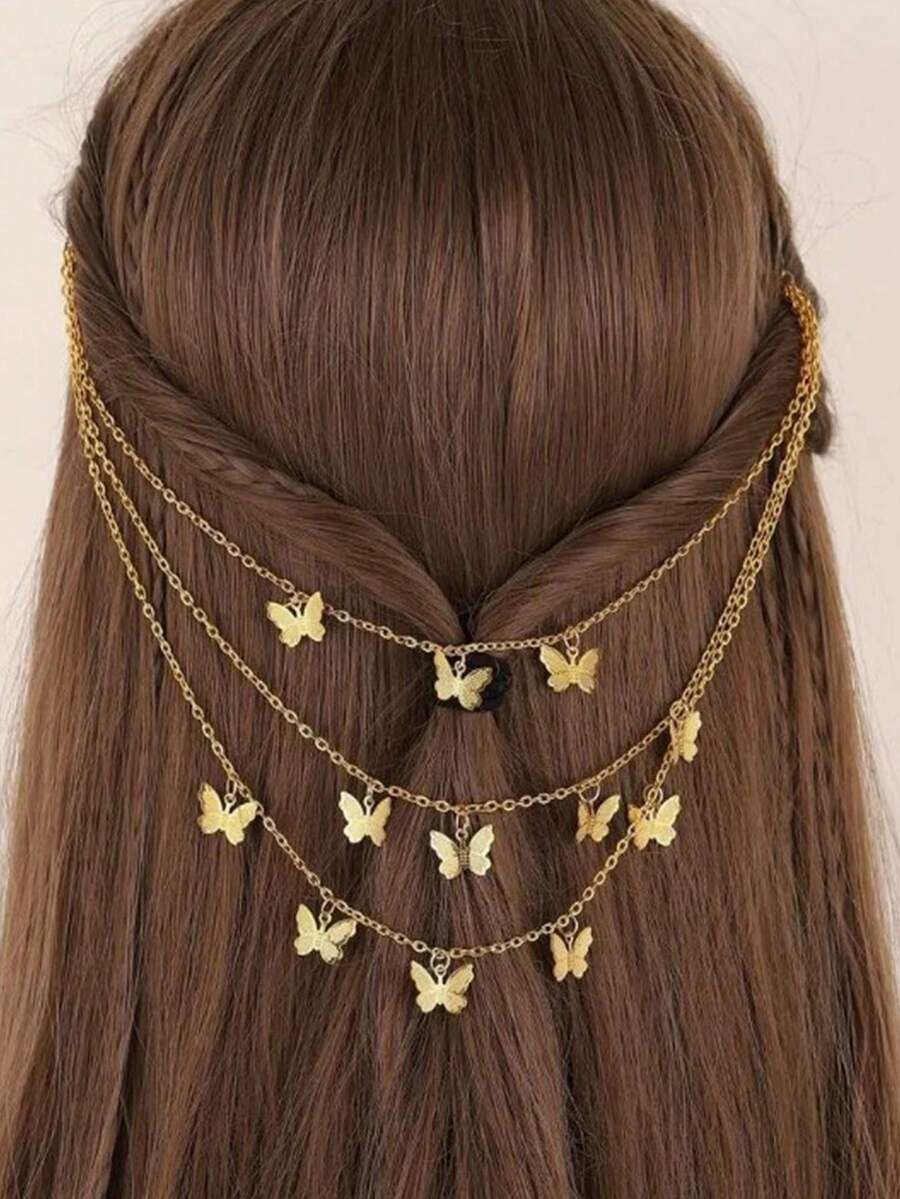 chaîne de cheveux papillon dorée