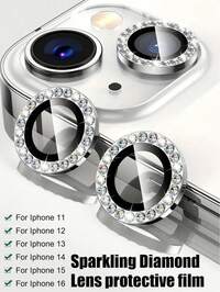 1 set Super protecteur 9D film protecteur de lentille en diamant argent, avec couvercle d'anneau de doigt, verre trempé résistant aux rayures, protège l'appareil photo, résistant à l'usure, diamants non tombants, haute clarté et transparence, imperméable, antichoc, anti-chute, anti-empreintes digitales, protection intégrale #6 BEST-SELLERS