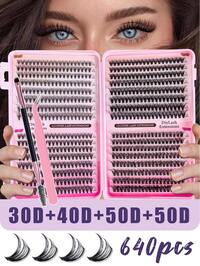 544/640 pièces Faux cils en amas de type D Curl, grande capacité, convient pour un look épais et moelleux, naturel. Maquillage des yeux de beauté, DIY à la maison. Grande capacité, livre d'cils individuels pour débutants, facile, artiste maquilleur, faux cils doux et longue durée. Extensions de cils segmentées pour un look yeux de renard/chat, livre de cils portable pour voyage, convient pour scène, mariage, extérieur, travail quotidien, fête musicale en utilisant des amas de cils (80D100D/50D60D/30D40D/10D20D) #10 BEST-SELLERS
