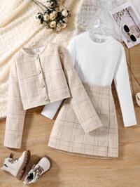 Clover CornerSHEIN Tenue élégante noir et blanc contrastée pour préadolescentes, convenant aux tenues décontractées, à la rentrée scolaire, aux cérémonies, à l'usage quotidien, à l'école, aux voyages, à l'automne/hiver, aux fêtes, aux mariages, à Noël, à Halloween, aux événements formels, aux concerts #6 BEST-SELLERS