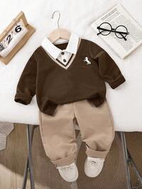 PipplinSHEIN 2 pièces/Set sweat-shirt à manches longues et pantalon de jogging pour tout-petits/bébés garçons/filles, automne/hiver. Tenue de base confortable et décontractée, style sportif. Convient pour l'intérieur, l'extérieur, le quotidien, les sports, les jeux, les fêtes, les séances photo, les vacances, les festivals, les survêtements, le streetwear, la rentrée scolaire #1 BEST-SELLERS