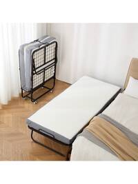 Lit de camp pliant pour adultes, robuste avec matelas épais et moelleux, tubes renforcés, idéal pour les voyages et le bureau, gris avec rembourrage épais, système de soutien extra-large, convient à une utilisation intérieure et extérieure, conception compacte, compatible avec différents matelas, idéal pour le camping, la maison et les voyages.
