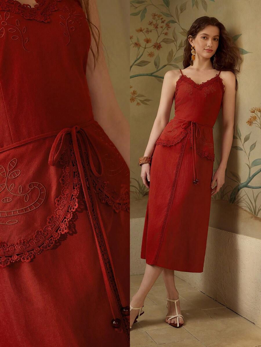 MOTF PREMIUM ROBE CAMI CEINTURÉE BRODÉE