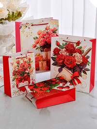 4 pièces Ensemble de sacs cadeaux de fleurs de rose pour la Saint-Valentin, roses romantiques, avec poignée intégrée, convient pour offrir en cadeau pour la Saint-Valentin, cadeaux de mariage, cadeaux d'anniversaire, décoration de la Saint-Valentin, décoration de fête, sac cadeau de fleurs de printemps, sac cadeau de fleurs de rose, sac d'emballage, sac à main