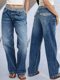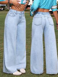 SHEIN PETITE Jeans droits ajustés pour femmes PETITE, bleu, été pour femmes, streetwear pour femmes, été pour femmes, jeans amples, cowgirl pour femmes, festival rave, concert pour femmes, concert country, femmes country, jeans fluides, jeans de club pour femmes #6 BEST-SELLERS