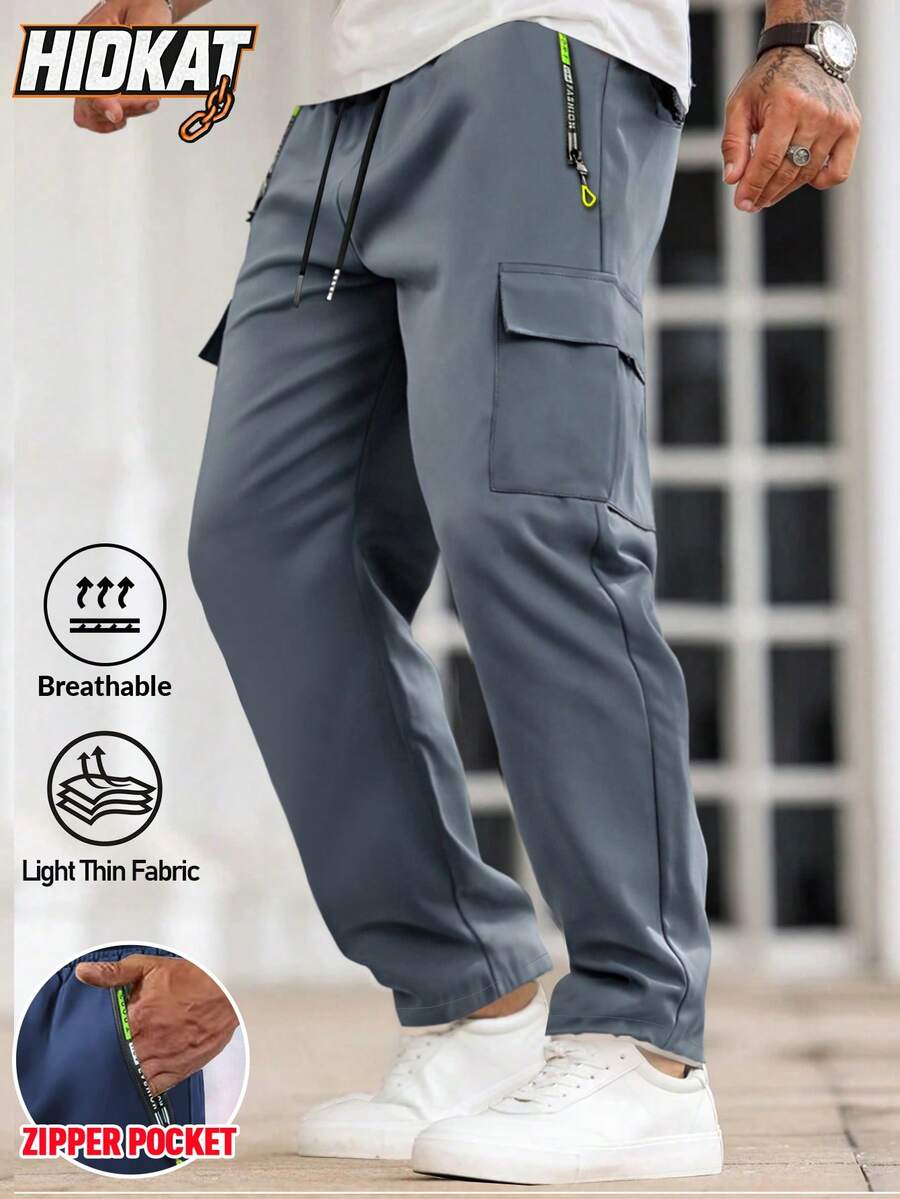 Hidkat Pantalon cargo casual à poches multiples pour hommes, léger et respirant, taille à cordon de serrage, poches zippées, convient pour le port casual quotidien et les activités extérieures, printemps/été