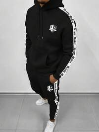 Manfinity Homme Ensemble sweat-shirt à capuche et pantalon de sport avec imprimé lettres pour hommes, survêtement, urbain, color block, ensemble 2 pièces avec sweat-shirt à capuche pour hommes, ensemble 2 pièces pour hommes, ensemble 2 pièces de survêtement pour hommes, ensemble jogging 2 pièces pour hommes, ensemble noir 2 pièces pour hommes avec sweat-shirt à capuche et pantalon, ensemble 2 pièces noir pour hommes, tenue d'automne #3 BEST-SELLERS