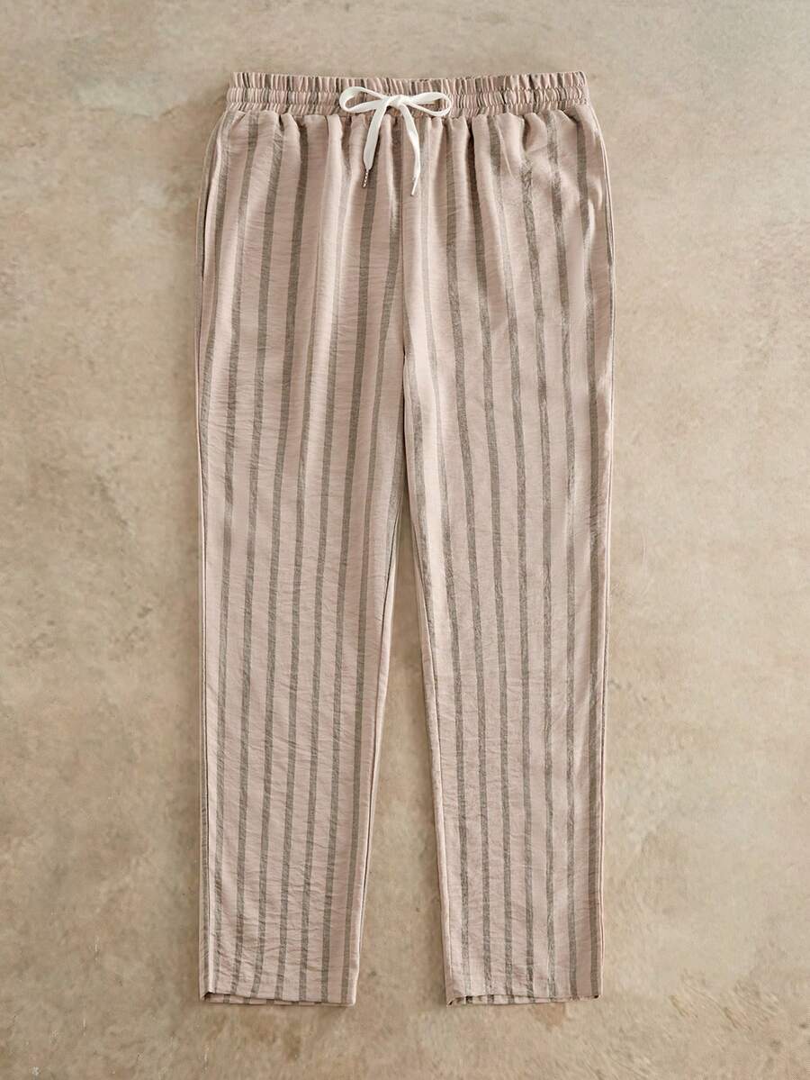 HIMLAND Pantalon décontracté à taille élastique tissée avec poches et imprimé rayé pour hommes