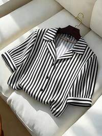 Chemise à rayures contrastées Solstice Apparel, graphique brodé en forme de cœur et de lettre, col châle, coupe décontractée, manches longues, convient pour le travail, les sorties décontractées, les rendez-vous, les rassemblements entre amis, la Saint-Valentin, le printemps/l'été #1 BEST-SELLERS