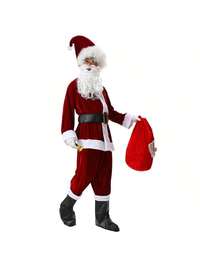 7 pièces Set, Costume de Mascotte de Noël pour Enfants, Costume de Père Noël en Velours Bordeaux de Luxe pour Enfants, Tenues de Père Noël pour Garçons et Filles avec Veste à Fermeture Éclair, Pantalon Élastique, Chapeau, Barbe, Ceinture Élastique, Couvre-Bottes, Sac du Père Noël, Costumes de Père Noël pour Décoration de Noël Intérieur Extérieur Livraison Rapide