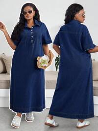 SHEIN LadySHEIN Lady Robe en jean ample et décontractée à manches courtes pour femmes grandes tailles, tenue d'été, de vacances, de Pâques, de printemps, de bureau, de rave, de baby shower, de style cottage, de campagne, de style old money, de sortie, de festival, de rodéo, d'aéroport, de K-pop, de vacances tropicales, de Nashville, d'été européen, de concert, de cow-girl, de remise des diplômes, élégante, de villégiature, de tenue décontractée chic, de style western, de style Y2K, de vacances, d'église, d'aéroport/de plage, de vacances, de plage, de style bohème, de croisière, de style old money, d'Ibiza, de style bohème chic, hawaïenne #6 BEST-SELLERS