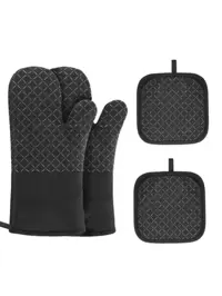 1 pièce de Gant de four micro-ondes résistant à la chaleur en polyester, gants isolés avec une résistance à la température de 160 degrés Celsius, gants de cuisine, de cuisson, de barbecue et de four micro-ondes, manique, parfait pour la cuisson et la cuisine, fournitures et accessoires de cuisine essentiels, convient pour la cuisson, l'usage domestique en cuisine, accessoires de cuisine, Remarque : un gant (noir)