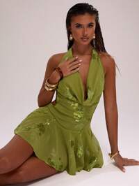 Aloruh Robe mini élégante en mousseline de soie jaune beurre avec lien à la nuque pour femmes, robe de soirée, robe de sortie, robes d'été pour femmes, tenues de lune de miel, robe de témoin de mariage pour femmes, tenues de vacances à l'île, robe de témoin de mariage pour femmes, robes d'été pour femmes, robes élégantes pour fête, robes d'anniversaire pour femmes #1 BEST-SELLERS