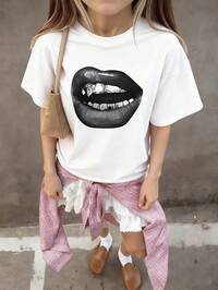 SHEIN T-shirt court décontracté de base pour filles, style printemps et été, créatif, personnalité fraîche et élégante, minimaliste, à carreaux, numéro 67, décoré de dentelle et nœud, avec slogan imprimé. Confortable pour le port quotidien, styles cosy pour l'été et l'automne, convient pour le printemps, l'été et l'automne