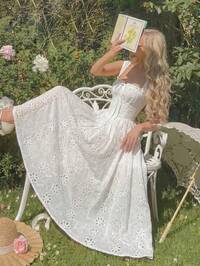 Firerie Robe maxi élégante pour femmes, idéale pour le printemps/été, romantique et délicate. Parfaite pour les invités de mariage, les rendez-vous, les vacances, les bals, les anniversaires et les vacances à la plage. Avec décoration florale 3D, dos nu, volants drapés, texture de dentelle, bretelles spaghetti, couleur jaune pâle