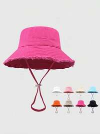 1 pièce Chapeau seau mode femme, chapeau de soleil de voyage extérieur, similaire au style Hyuna, large bord, coton lavé, cordon de serrage, protection solaire, convient pour l'extérieur, les voyages, les vacances, la vie quotidienne