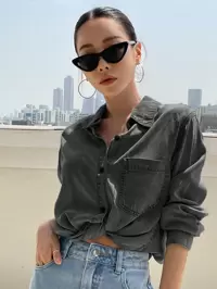 de Manches longues Hauts en jean pour femmes
