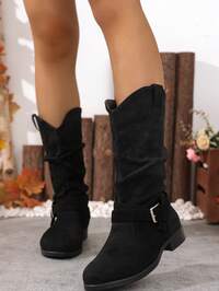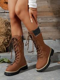 planare Nouvelles bottes mi-mollet marron brodées pour femmes, bottes en denim mi-mollet à bout pointu, bottes mi-mollet à talon compensé, mode et élégantes, design confortable à enfiler, convient pour les mariages, les fêtes, les vacances, les voyages, les festivals de musique, l'automne/l'hiver