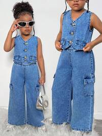 de Uni Tenues deux pièces en jean pour jeunes filles