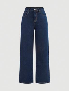 SHEIN Jeans en denim bleu foncé à jambes larges et amples pour adolescentes