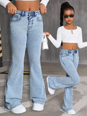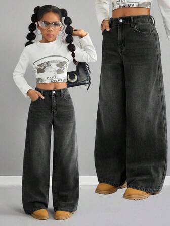 SHEIN Jeans bleus vintage taille basse ample pour préadolescentes