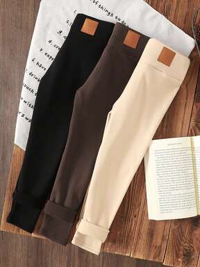 2 pièces Pantalons de sport de couleur unie avec cordon de serrage pour filles pré-adolescentes