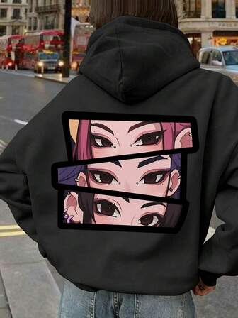 SHEIN Happikins Sweat-shirt à capuche ample en polaire à imprimé floral et lettres, style vintage universitaire, décontracté et confortable pour les trajets quotidiens. Convient pour l'automne/hiver. Sweatshirts mignons pour filles avec imprimé floral