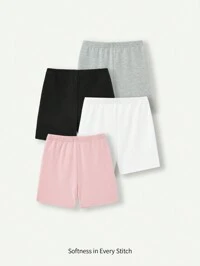 Cozy Pixies Ensemble de 4 pièces de shorts de couleurs unies en tricot doux pour bébé fille décontracté